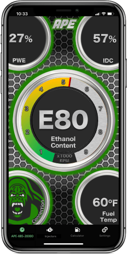Alternative Performance Engineering has an iPhone & Android application called “APE X85” that lets you monitor your Ethanol Percentage and maximum injector duty cycle.Real-Time Data